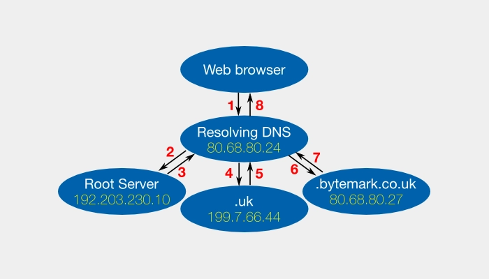 در ادامه بهصورت مرحلهبهمرحله توضیح میدهیم که DNS چگونه کار میکند: